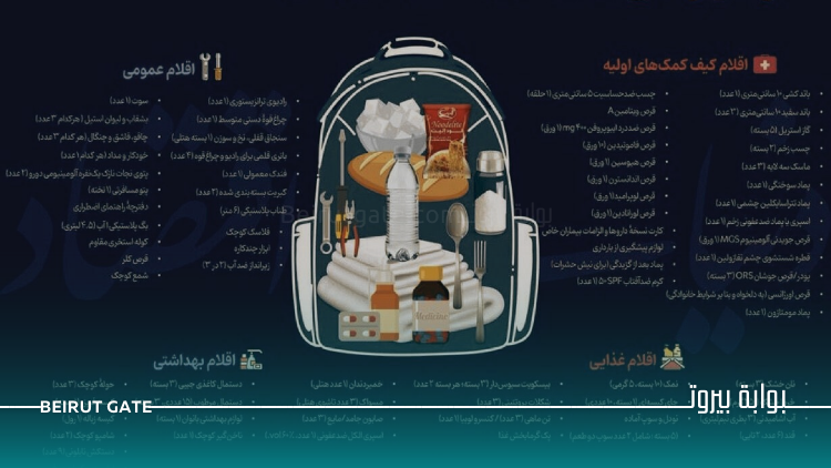 وتغطي القائمة الاحتياجات الأساسية للاستمرار في الحياة، من مستلزمات طبية وغذائية وصحية، إلى أدوات إنارة وتدفئة وحماية، مرورًا بأدوية وبطاريات ومياه ووجبات جاهزة، في إشارة إلى توقعات بحدوث سيناريو أمني خطير أو انهيار داخلي.
