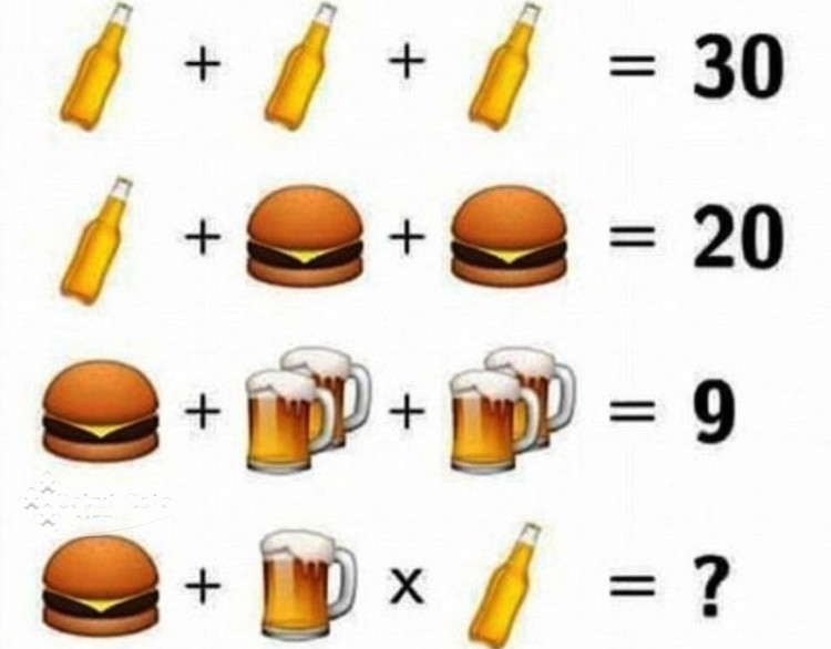 وهذا اللغز هو عبارة عن صورة تحتوي على مجموعة من البيرة والبرغر، وعلى رواد الانترنت معرفة مجموعها.