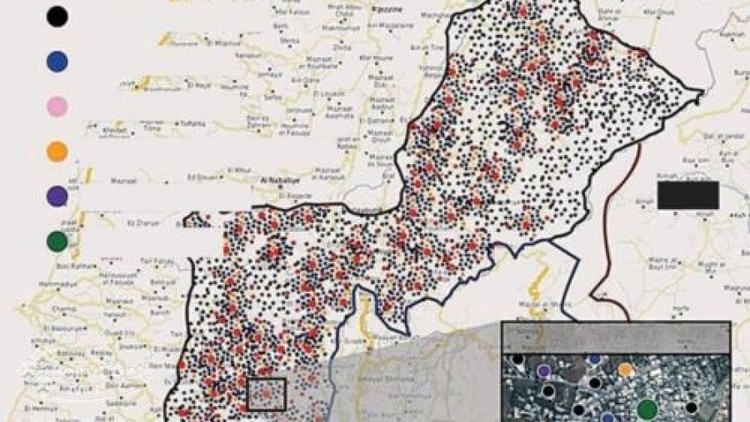 نشر جيش الاحتلال الإسرائيلي في سابقة هي الأولى من نوعها عن معلومات استخباراتية سرية تتضمن خريطة لـ10 آلاف هدف عسكري سري تابعة لحزب الله في بلدات الجنوب اللبناني.