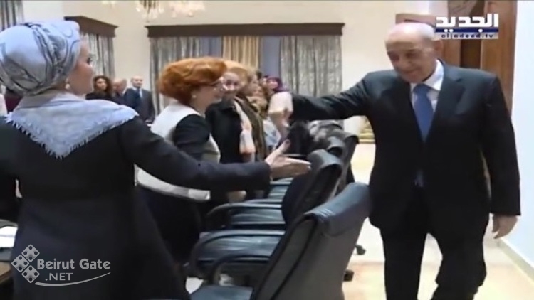 بالفيديو : زوجة رئيس مجلس النواب نبيه بري ترفض تقبيل يده