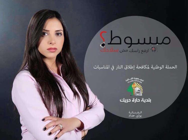 وعبّرت الممثلة بولين حداد عن دعمها لهذه الحملة الوطنية لمكافحة إطلاق النار خلال المناسبات في رعاية بلدية حارة حريك، إذ نشرت فيديواً قالت فيه : “مرتك ولّدت؟ بنتك تزوجت؟ ابنك نجح؟ فريقك ربح؟ زعيمك عم يحكي؟… مبسوط؟ بترفع راسك مش سلاحك”.