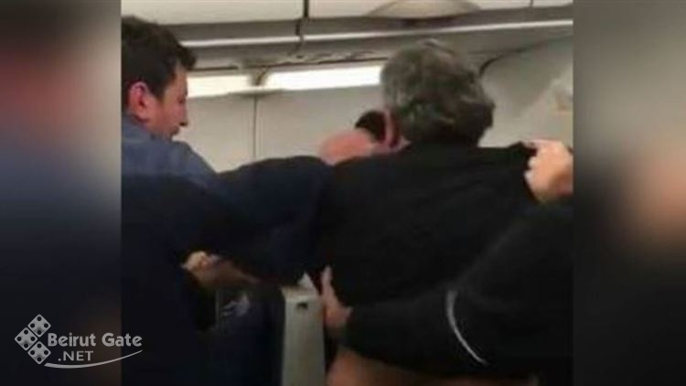 انتشر فيديو يظهر عملية التضارب التي حصلت مما اضطر الطائرة القادمة من بريطانيا إلى بيروت للهبوط في مطار اسطنبول في تركيا وذلك بعد الإشكال.