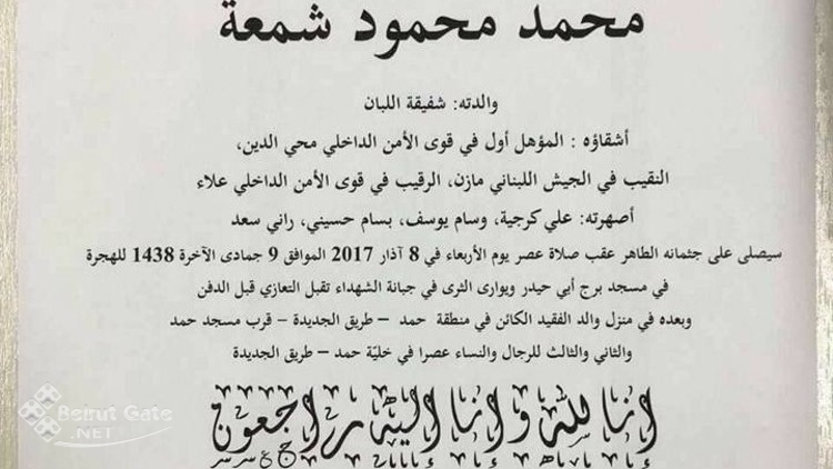 وكان الشمعة نقل إلى مستشفى المقاصد في بيروت، قبل أن يفارق الحياة متأثراً بجراحه.