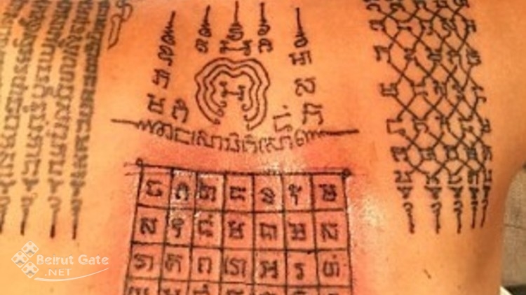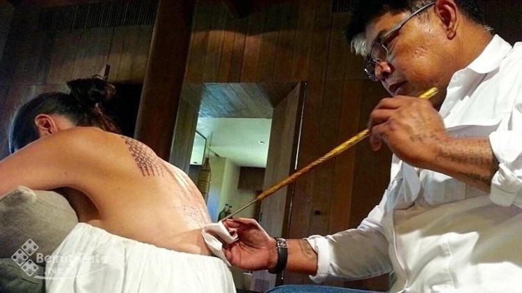 والكاهن التايلاندي الشهير الذي يتعامل مع كبار النجوم رسم وشما من قبل على كتف جولي عام 2003 وآخر عام 2004.
