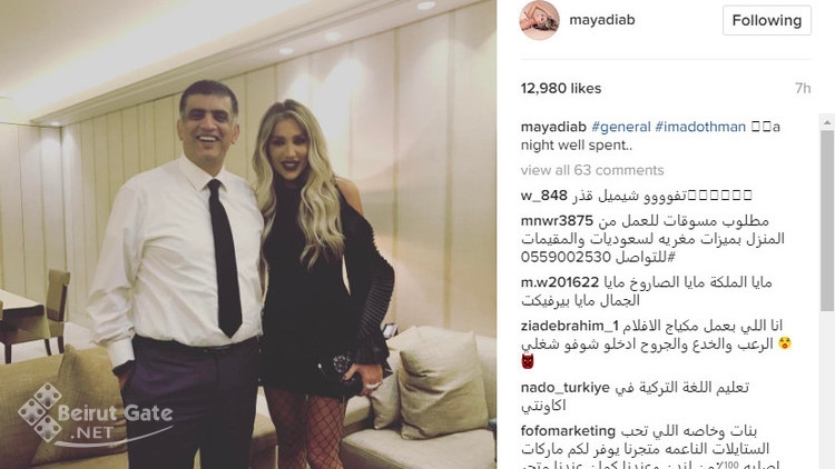نشرت الفنانة مايا دياب صورة جديدة لها وهي ترتدي فستانًا قصيرًا أسود اللون، برفقة مدير عام قوى الامن الداخلي عماد عثمان.