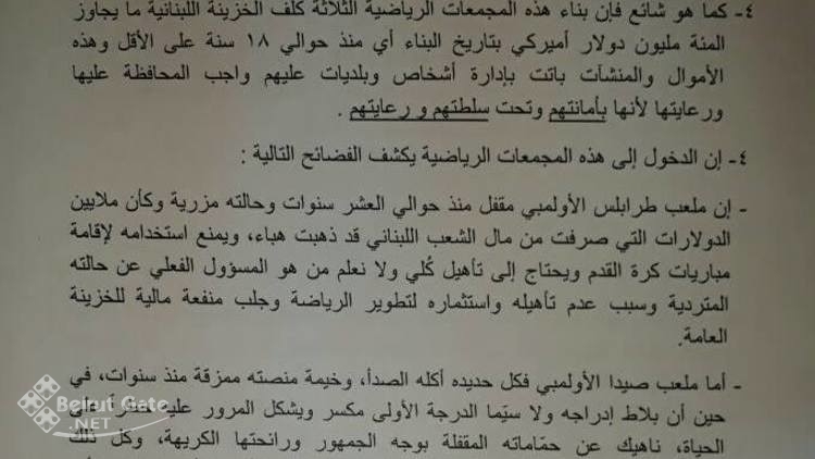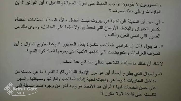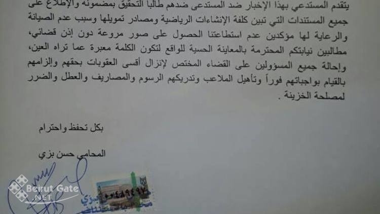 تقدّم المحامي حسن بزّي بإخبار أمام النيابة العامة التمييزية ضد كل من يظهره التحقيق من المسؤولين في اتحاد كرة القدم ومجلس ادارة مدينة كميل شمعون الرياضية و بلديتي طرابلس و صيدا بجرم الاهمال وعدم تأهيل المنشآت الرياضية والتسبّب بالإضرار بالجماهير وهدر المال العام.