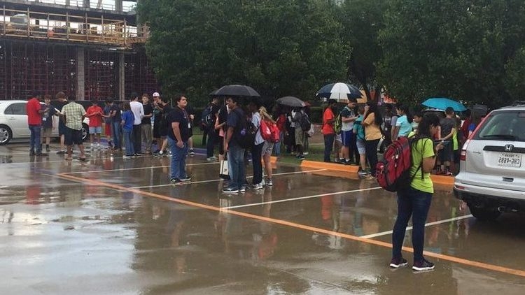 “على جميع العاملين والطلّاب والزائرين في جماعة تكساس بدالاس، إخلاء كلّ المباني والانتظار في مواقف السيّارات في الحرم الجامعي على الفور”.