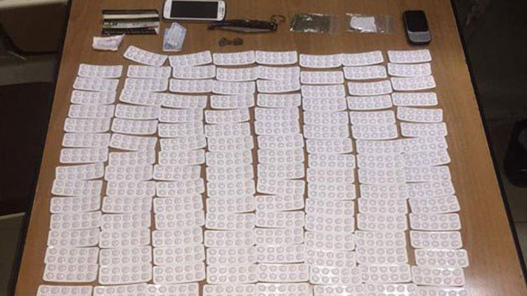 وذلك على متن سيارة نوع مرسيدس، ولدى تفتيشها ضبط بداخلها 2000 حبة ترامادول “فراولة”، و3 اكياس يتضمن كل منها مادة الكوكايين، مادة السيلفيا، مادة حشيشة الكيف، دفاتر لف، سكين 6 طقات.