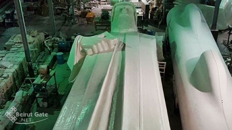 وقد التقت الاب ايلي قرقماز صورة لأضخم تمثال للقديس شربل من موقع تصنيعه في “شركة بيروت الدولية” قبل نقله الى مقر إستقراره النهائي.