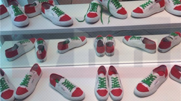 ايعقل ان محلّاً صاحبه لبناني يعرض للبيع أحذية تحمل ألوان العلم اللبناني ؟
