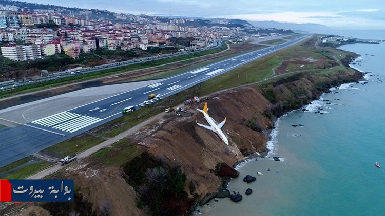 ونُشر على موقع “يوتيوب” مقطع فيديو لإجلاء ركاب من الطائرة التي خرجت عن مسارها من ممرّ الهبوط باتجاه البحر في مطار طرابزون التركي، بعدما غرس عجلاتها في الطين المكسو بالثلج وتتوقف على بعد أمتار قليلة عن سطح البحر، لينجو من كان على متنها من موت محقق.