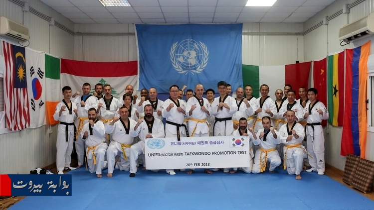 نظّمت الكتيبة الكوريّة العاملة ضمن إطار قوّة الأمم المتحدة المؤقّتة في لبنان “اليونيفيل” لمتدرّبي التايكواندو اختبار حزام التايكواندو في مقر القطاع الغربي الرئيس.