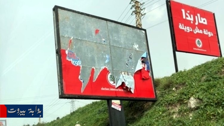 إنتشرت على مواقع التواصل الإجتماعي صور تظهر تعرض اللوحات الإعلانية الإنتخابية لحزب “القوات اللبنانية” للإعتداء وإتلاف على طريق عام الغازية – قضاء الزهراني.