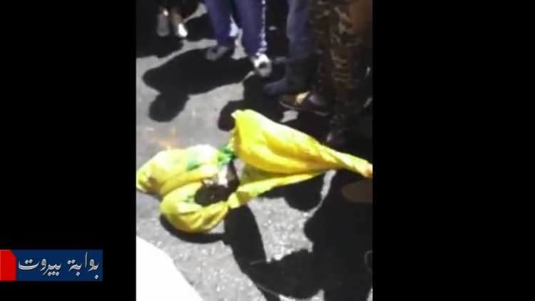 انتشر على مواقع التواصل الإجتماعي فيديو لمجموعة من الشبان أثناء اعتصامهم في قضاء بعلبك وهم يحرقون علم “حزب الله”.
