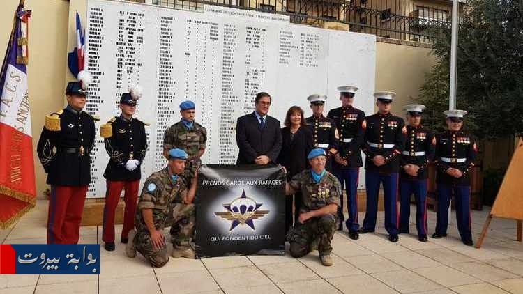 اضاف: “في الوقت الذي يخدم فيه العديد من الفرنسيين الشجعان بتفان في لبنان إلى جانب رفاقهم اللبنانيين وأيضا في اماكن عمليات أخرى في العالم، نستذكر بعاطفة كبيرة اليوم الذكرى ال- 35 لهذه الهجمات التي أودت بحياة العشرات من الشباب الفرنسيين والأميركيين”، راجيا أن “تذكرنا هذه الأحداث بأن الديموقراطية والحرية والسلام لا يتحققون أبدا وأن علينا الدفاع عنهم باستمرار وبلا هوادة. واشيد هنا من خلال الضباط اللبنانيين الثلاثة الذين حصلوا على ميدالية الدفاع الوطني الفرنسية، بالجيش اللبناني الذي انتصر على الأرهاب في عام 2017”.